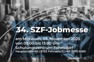 Jobsuchende mit Jobs zu verbinden, das ist das Ziel der SZF-Jobmesse. Alle interessierten Personen sind herzlichst zur SZF-Jobmesse im Schulungszentrum Fohnsdorf eingeladen.