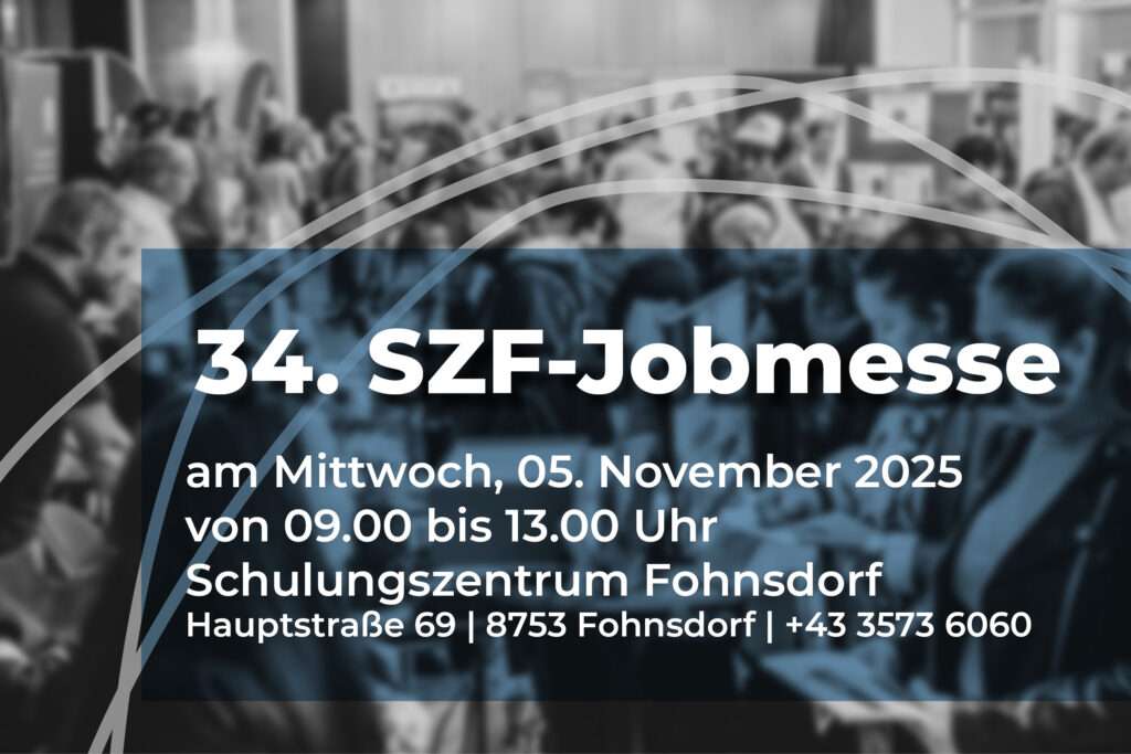 Alle interessierten Personen sind herzlichst zur SZF-Jobmesse im Schulungszentrum Fohnsdorf eingeladen. Bei der SZF-Jobmesse können Sie sich über berufliche Aus- und Weiterbildungen informieren, mit potenziellen Arbeitgeber*innen Kontakte knüpfen und Ihr Netzwerk aufbauen.